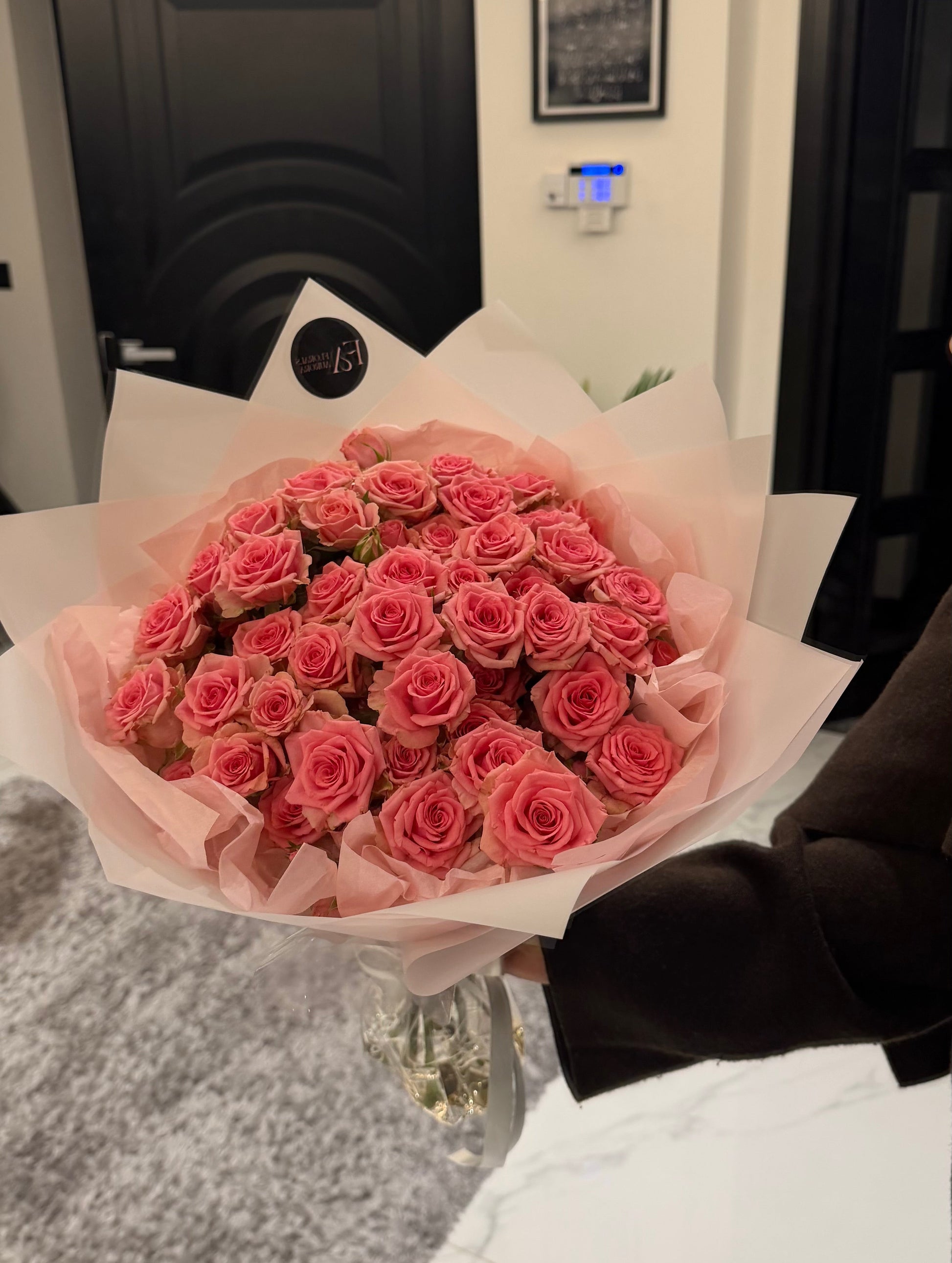 This vibrant mix of hot pink spray roses is perfect for adding a pop of color to any arrangement. With its bold hue, it will surely make a statement and bring joy to any occasion. A must-have for any floral enthusiast.