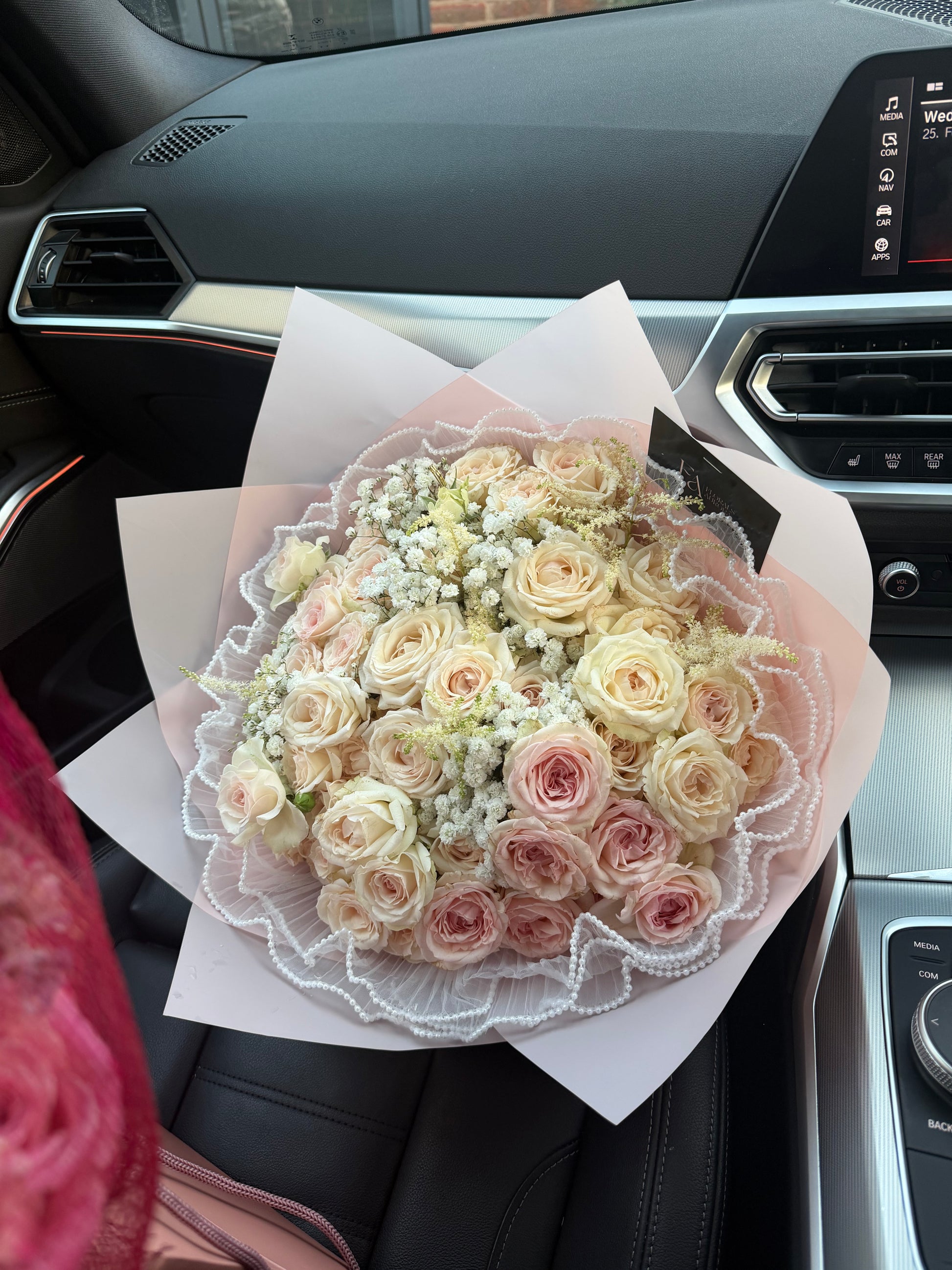 The Pearl Blush Pink is a carefully designed pink spray bouquet, featuring an arrangement of delicate blooms that enhance floral aesthetics. This bouquet offers a harmonious blend of colors, making it suitable for various occasions, with a focus on elegance and sophistication in floral design.
